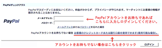 4、PayPalのページに移動します。「PayPalアカウントをお持ちでない場合」の横の リンクをクリックしてください。(※PayPalアカウントをお持ちの方)