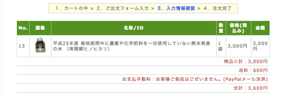 2、確認画面で、送料を含んだ合計金額を確認してご注文頂きます。